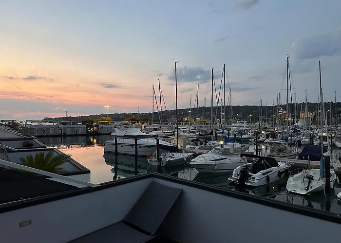Offering a hot tub for a relaxing experience, the beachfront Floating Sea House Marina Pearl Villa Portoroz is located a 10-minute drive from the Museum of Underwater Activities. Providing guests with Wi-Fi and complimentary private parking, this villa is 4.2 km from the Bele Skale Beach.